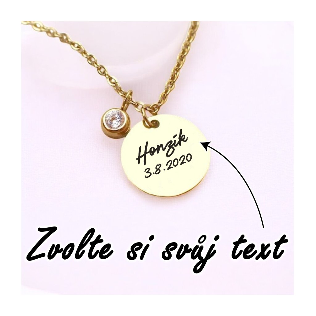 Luxusní náhrdelník - Medailonek na řetízku se zirkonem - S vlastním textem datum